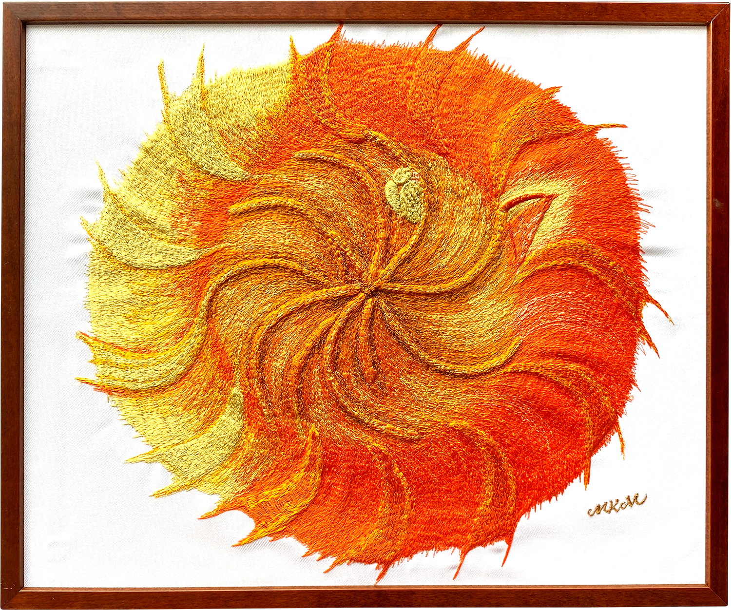 現在、ハンドメイドの横振り刺繍による作品作りを充実させるため意欲的に横振り刺繍を行う。