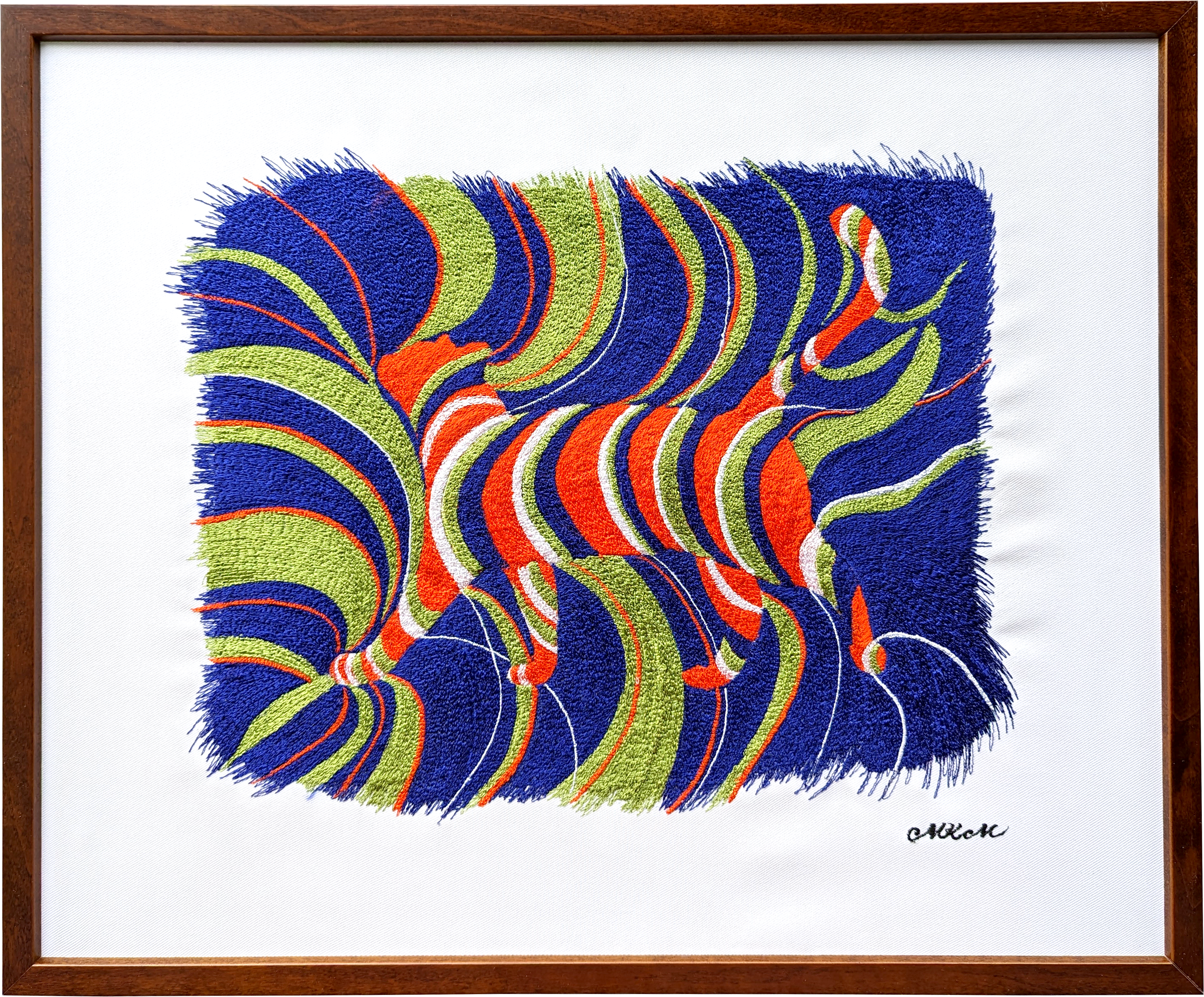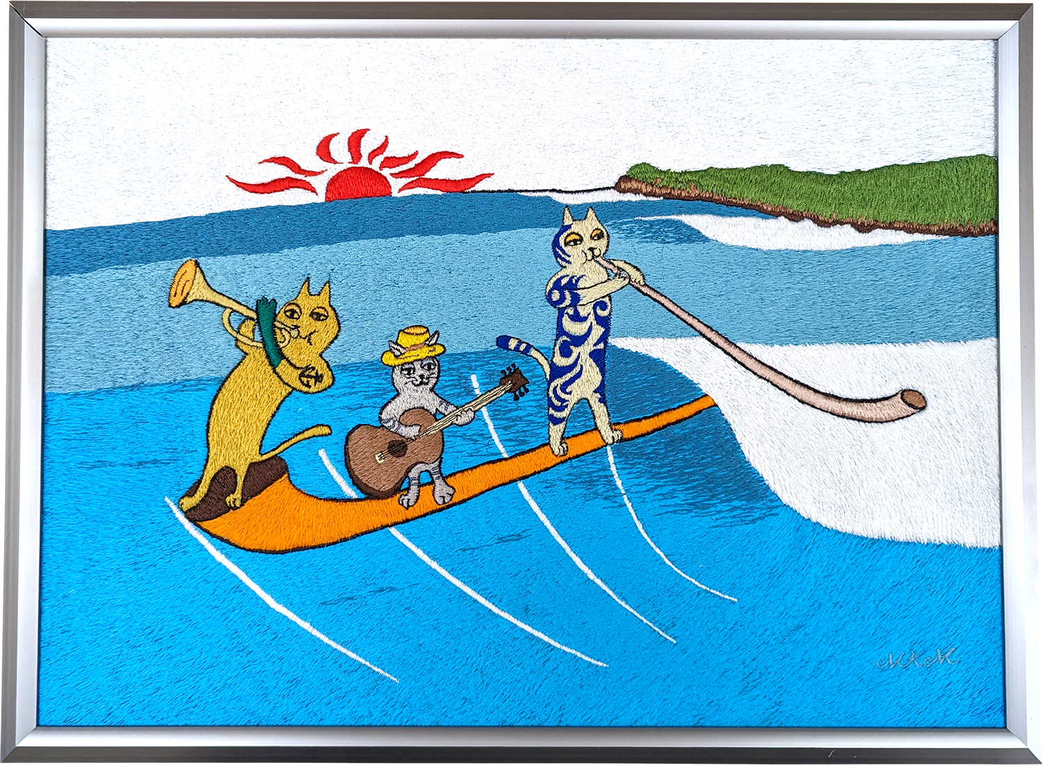 Tシャツをキャンバスと見立て製作販売をマシン(コンピューター)の刺繍機により行う。